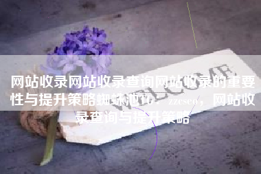 网站收录网站收录查询网站收录的重要性与提升策略蜘蛛池TG:zzcseo,网站收录查询与提升策略