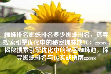 蜘蛛排名蜘蛛排名多少蜘蛛排名,探寻搜索引擎优化中的秘密蜘蛛池TG:zzcseo,揭秘搜索引擎优化中的秘密蜘蛛池,探寻蜘蛛排名与TG实战指南(zzcseo)