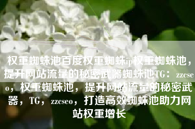 权重蜘蛛池百度权重蜘蛛ip权重蜘蛛池,提升网站流量的秘密武器蜘蛛池TG:zzcseo,权重蜘蛛池,提升网站流量的秘密武器,TG,zzcseo,打造高效蜘蛛池助力网站权重增长