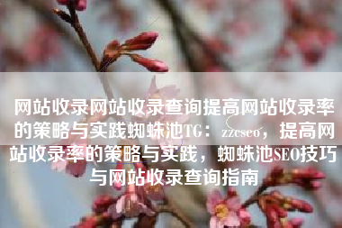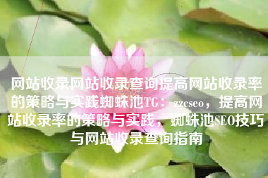 网站收录网站收录查询提高网站收录率的策略与实践蜘蛛池TG:zzcseo,提高网站收录率的策略与实践,蜘蛛池SEO技巧与网站收录查询指南