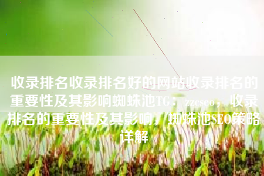 收录排名收录排名好的网站收录排名的重要性及其影响蜘蛛池TG:zzcseo,收录排名的重要性及其影响,蜘蛛池SEO策略详解