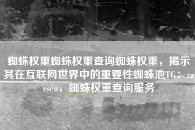蜘蛛权重蜘蛛权重查询蜘蛛权重,揭示其在互联网世界中的重要性蜘蛛池TG:zzcseo,蜘蛛权重查询服务