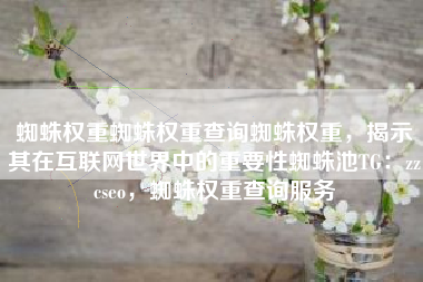 蜘蛛权重蜘蛛权重查询蜘蛛权重,揭示其在互联网世界中的重要性蜘蛛池TG:zzcseo,蜘蛛权重查询服务