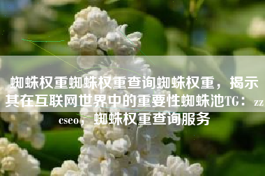 蜘蛛权重蜘蛛权重查询蜘蛛权重,揭示其在互联网世界中的重要性蜘蛛池TG:zzcseo,蜘蛛权重查询服务
