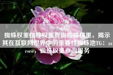 蜘蛛权重蜘蛛权重查询蜘蛛权重,揭示其在互联网世界中的重要性蜘蛛池TG:zzcseo,蜘蛛权重查询服务