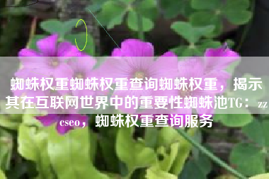 蜘蛛权重蜘蛛权重查询蜘蛛权重,揭示其在互联网世界中的重要性蜘蛛池TG:zzcseo,蜘蛛权重查询服务