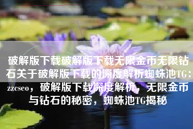 破解版下载破解版下载无限金币无限钻石关于破解版下载的深度解析蜘蛛池TG:zzcseo,深度解析破解版下载,无限金币钻石与蜘蛛池TG的秘密