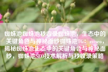 蜘蛛池,作为自然生态系统的重要部分,它承载着关键的角色,蜘蛛池能够实现秒收录,对SEO优化有着不可忽视的意义,随着对其神秘面纱的逐渐揭开,蜘蛛池的生态作用也逐渐受到人们的关注,通过TG:zzcseo,我们可以更深入地探索蜘蛛池的作用和价值。蜘蛛池的定义与特点蜘蛛池,指的是蜘蛛种群在特定环境中...