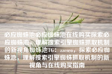 必应蜘蛛池必应蜘蛛池在线购买探索必应蜘蛛池,理解搜索引擎蜘蛛抓取机制的新视角蜘蛛池TG:zzcseo,探索必应蜘蛛池,理解搜索引擎蜘蛛抓取机制的新视角与在线购买指南