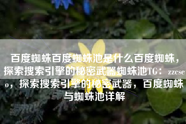 百度蜘蛛百度蜘蛛池是什么百度蜘蛛,探索搜索引擎的秘密武器蜘蛛池TG:zzcseo,探索搜索引擎的秘密武器,百度蜘蛛与蜘蛛池解析