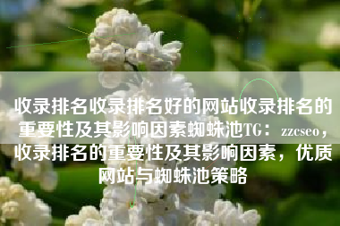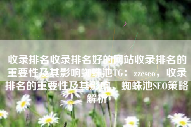 收录排名收录排名好的网站收录排名的重要性及其影响因素蜘蛛池TG:zzcseo,收录排名的重要性及其影响因素,优质网站与蜘蛛池策略