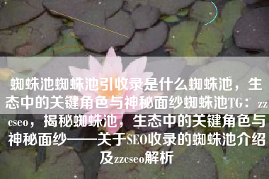 蜘蛛池蜘蛛池引收录是什么蜘蛛池,生态中的关键角色与神秘面纱蜘蛛池TG:zzcseo,揭秘蜘蛛池,生态中的关键角色与神秘面纱——SEO收录的秘密武器(附zzcseo介绍)