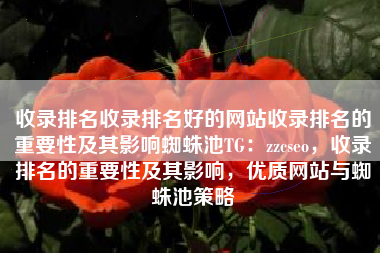 收录排名收录排名好的网站收录排名的重要性及其影响蜘蛛池TG:zzcseo,收录排名的重要性及其影响,优质网站与蜘蛛池策略