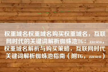 权重域名权重域名购买权重域名,互联网时代的关键词解析蜘蛛池TG:zzcseo,权重域名解析与购买策略,互联网时代关键词解析蜘蛛池指南(附TG,zzcseo)