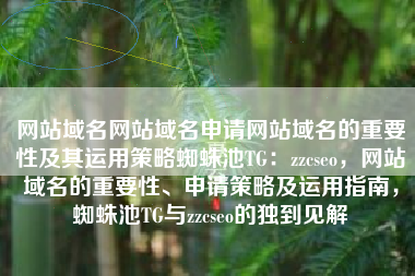 网站域名网站域名申请网站域名的重要性及其运用策略蜘蛛池TG:zzcseo,网站域名的重要性、申请策略及运用指南,蜘蛛池TG与zzcseo的洞察