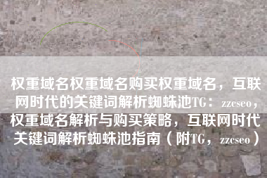 权重域名权重域名购买权重域名,互联网时代的关键词解析蜘蛛池TG:zzcseo,权重域名解析与购买策略,互联网时代关键词解析蜘蛛池指南(附TG,zzcseo)