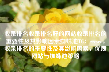 收录排名收录排名好的网站收录排名的重要性及其影响因素蜘蛛池TG:zzcseo,收录排名的重要性及其影响因素,优质网站与蜘蛛池策略