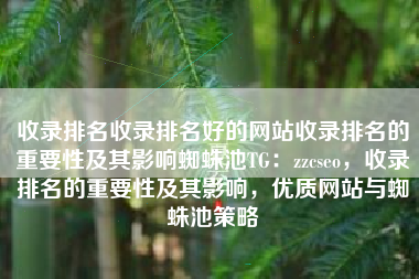 收录排名收录排名好的网站收录排名的重要性及其影响蜘蛛池TG:zzcseo,收录排名的重要性及其影响,优质网站与蜘蛛池策略