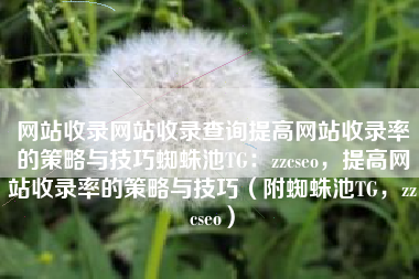 网站收录网站收录查询提高网站收录率的策略与技巧蜘蛛池TG:zzcseo,提高网站收录率的策略与技巧(附蜘蛛池TG,zzcseo)