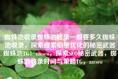 蜘蛛池收录蜘蛛池收录一般要多久蜘蛛池收录,探索搜索引擎优化的秘密武器蜘蛛池TG:zzcseo,探索SEO秘密武器,蜘蛛池收录时间与策略TG,zzcseo