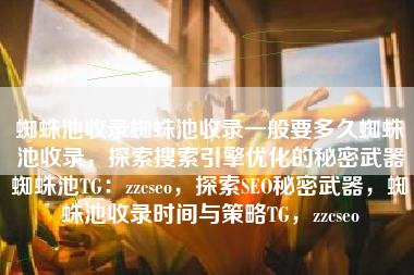 蜘蛛池收录蜘蛛池收录一般要多久蜘蛛池收录,探索搜索引擎优化的秘密武器蜘蛛池TG:zzcseo,探索SEO秘密武器,蜘蛛池收录时间与策略TG,zzcseo