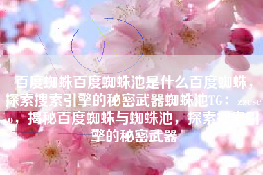 百度蜘蛛百度蜘蛛池是什么百度蜘蛛,探索搜索引擎的秘密武器蜘蛛池TG:zzcseo,揭秘百度蜘蛛与蜘蛛池,探索搜索引擎优化秘密武器