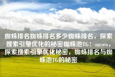 蜘蛛排名蜘蛛排名多少蜘蛛排名,探索搜索引擎优化的秘密蜘蛛池TG:zzcseo,探索搜索引擎优化秘密,蜘蛛排名与蜘蛛池TG的秘密