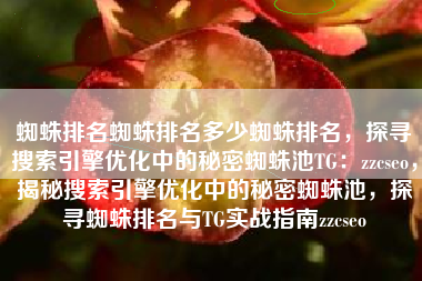蜘蛛排名蜘蛛排名多少蜘蛛排名,探寻搜索引擎优化中的秘密蜘蛛池TG:zzcseo,揭秘搜索引擎优化中的秘密蜘蛛池,探寻蜘蛛排名与TG实战指南zzcseo