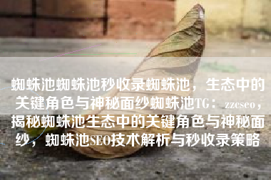 蜘蛛池蜘蛛池秒收录蜘蛛池,生态中的关键角色与神秘面纱蜘蛛池TG:zzcseo,揭秘蜘蛛池生态中的关键角色与神秘面纱,蜘蛛池SEO技术解析与秒收录策略