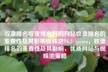 收录排名收录排名好的网站收录排名的重要性及其影响蜘蛛池TG:zzcseo,收录排名的重要性及其影响,优质网站与蜘蛛池策略