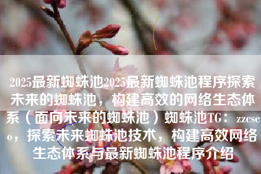2025最新蜘蛛池2025最新蜘蛛池程序探索未来的蜘蛛池,构建高效的网络生态体系(面向未来的蜘蛛池)蜘蛛池TG:zzcseo,探索未来蜘蛛池,构建高效网络生态体系——最新蜘蛛池程序与TG群分享