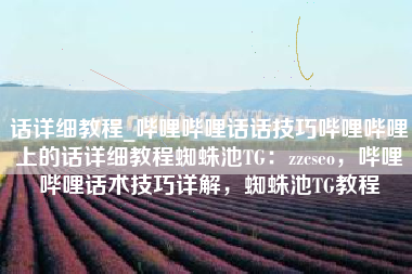 话详细教程_哔哩哔哩话话技巧哔哩哔哩上的话详细教程蜘蛛池TG:zzcseo,哔哩哔哩话术技巧详解,蜘蛛池TG教程
