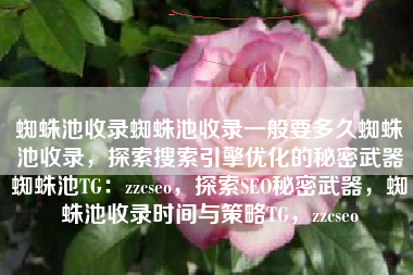 蜘蛛池收录蜘蛛池收录一般要多久蜘蛛池收录,探索搜索引擎优化的秘密武器蜘蛛池TG:zzcseo,探索SEO秘密武器,蜘蛛池收录时间与策略TG,zzcseo