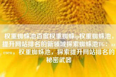 权重蜘蛛池百度权重蜘蛛ip权重蜘蛛池,提升网站排名的新领域探索蜘蛛池TG:zzcseo,权重蜘蛛池,探索提升网站排名的秘密武器