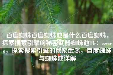 百度蜘蛛百度蜘蛛池是什么百度蜘蛛,探索搜索引擎的秘密武器蜘蛛池TG:zzcseo,探索搜索引擎的秘密武器,百度蜘蛛与蜘蛛池详解
