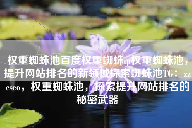 权重蜘蛛池百度权重蜘蛛ip权重蜘蛛池,提升网站排名的新领域探索蜘蛛池TG:zzcseo,权重蜘蛛池,探索提升网站排名的秘密武器