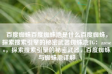 百度蜘蛛百度蜘蛛池是什么百度蜘蛛,探索搜索引擎的秘密武器蜘蛛池TG:zzcseo,探索搜索引擎的秘密武器,百度蜘蛛与蜘蛛池详解
