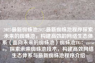 2025最新蜘蛛池2025最新蜘蛛池程序探索未来的蜘蛛池,构建高效的网络生态体系(面向未来的蜘蛛池)蜘蛛池TG:zzcseo,探索未来蜘蛛池技术,构建高效网络生态体系与最新蜘蛛池程序介绍