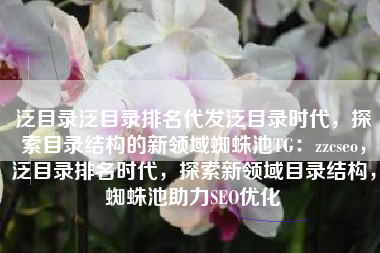 泛目录泛目录排名代发泛目录时代,探索目录结构的新领域蜘蛛池TG:zzcseo,泛目录排名时代,探索目录结构新领域与蜘蛛池SEO策略