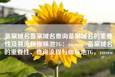 备案域名备案域名查询备案域名的重要性及其流程蜘蛛池TG:zzcseo,备案域名的重要性、查询流程与蜘蛛池TG,zzcseo