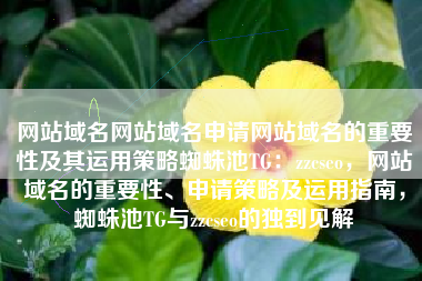 网站域名网站域名申请网站域名的重要性及其运用策略蜘蛛池TG:zzcseo,网站域名的重要性、申请策略及运用指南,蜘蛛池TG与zzcseo的独到见解