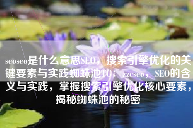 seoseo是什么意思SEO,搜索引擎优化的关键要素与实践蜘蛛池TG:zzcseo,SEO的含义与实践,掌握搜索引擎优化核心要素,揭秘蜘蛛池的秘密