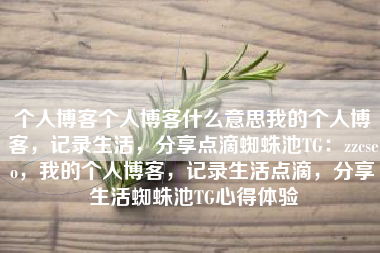 个人博客是一个用于记录生活、分享个人故事和点滴的平台,我的个人博客是一个记录生活的地方,我会在这里分享我的故事和经历,我也加入了蜘蛛池TG:zzcseo,通过这个平台与更多人分享我的博客内容,让更多人了解我的生活,我分享生活的点滴,记录成长的足迹,欢迎大家关注我的博客,一起分享生活的美好。