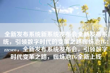 全新发布系统新系统发布会全新发布系统,引领数字化时代的变革之道蜘蛛池TG:zzcseo,全新发布系统发布会,引领数字化时代变革的蜘蛛池TG发布系统