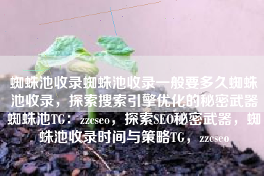 蜘蛛池收录蜘蛛池收录一般要多久蜘蛛池收录,探索搜索引擎优化的秘密武器蜘蛛池TG:zzcseo,探索SEO秘密武器,蜘蛛池收录时间与策略TG,zzcseo