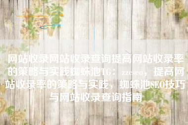 网站收录网站收录查询提高网站收录率的策略与实践蜘蛛池TG:zzcseo,提高网站收录率的策略与实践,蜘蛛池SEO技巧与网站收录查询指南