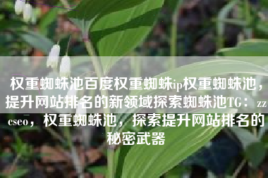 摘要权重蜘蛛池是一种新兴的技术手段,旨在提升网站的排名和曝光度,该技术通过集结大量的蜘蛛IP,形成蜘蛛池,以提高网站的抓取和收录效率,通过探索蜘蛛池的秘密武器,网站可以更有效地吸引流量和提升权重,如需了解更多关于权重蜘蛛池的信息,可以联系TG账号zzcseo进行深入了解。