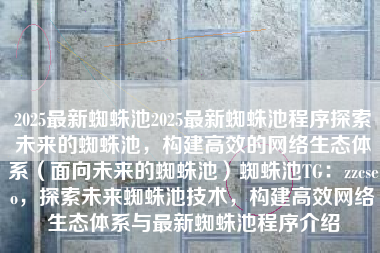 2025最新蜘蛛池2025最新蜘蛛池程序探索未来的蜘蛛池,构建高效的网络生态体系(面向未来的蜘蛛池)蜘蛛池TG:zzcseo,探索未来蜘蛛池技术,构建高效网络生态体系与最新蜘蛛池程序介绍