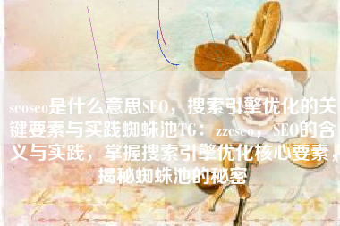 seoseo是什么意思SEO,搜索引擎优化的关键要素与实践蜘蛛池TG:zzcseo,SEO的含义与实践,掌握搜索引擎优化核心要素,揭秘蜘蛛池的秘密