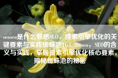 seoseo是什么意思SEO,搜索引擎优化的关键要素与实践蜘蛛池TG:zzcseo,SEO的含义与实践,掌握搜索引擎优化核心要素,揭秘蜘蛛池的秘密